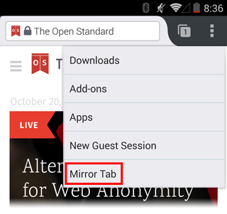 It might not always be practical to cast a mobile browser tab to a television, but for those odd moments where you need to fling a webpage over to the TV it’s nice to have that functionality available. The option is available from a simple drop down menu, the same menu where you’ll access things such as downloads and add-ons.
