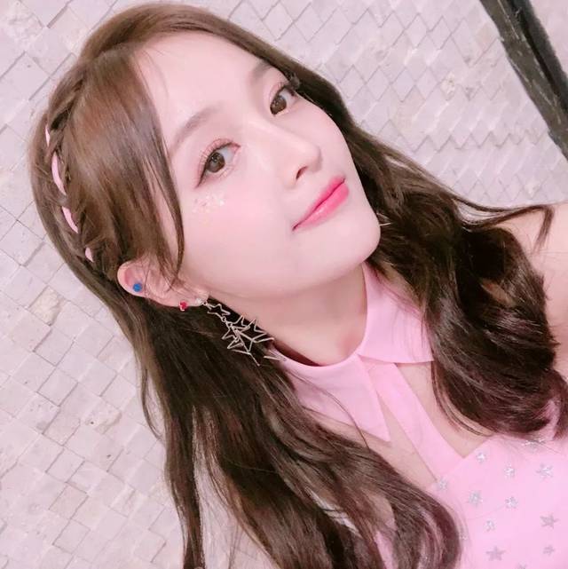 吴宣仪用粉色缎带来装饰麻花辫,很贴合她甜美可爱的风格。