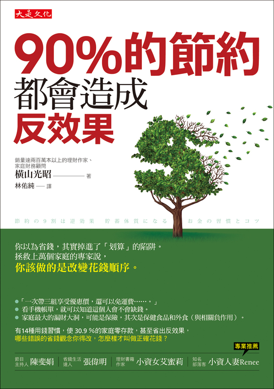 本文摘自橫山光昭的《90%的節約都會造成反效果:你以為省錢,其實掉進了「划算」的陷阱。拯救上萬個家庭的專家說,你該做的是改變花錢順序。》由大是文化授權原文轉載,欲閱讀完整作品,歡迎參考原書。