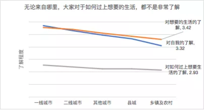 可以看出,這一代人已經有了更強的個體主義的意識和精神,追求的是基於個人的對於生活的認同感。也許可以說,這是一代已經認識到「自我認識」很重要,「好的生活」甚至「幸福感」是基於個體差異的基礎的(即每個人要找自己想要的生活方式和狀態)。但還沒有找到明確自己究竟想要什麼、以及如何獲得。