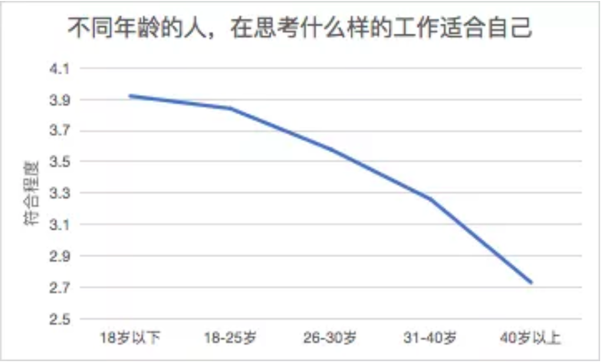 對於職業角色的困惑,也類似地表現出隨著年齡漸弱的狀態。18 歲以下尤其不困惑是因為這個命題在當時還沒有進入很多人的思考範疇內——人不會為想不到的事困惑。