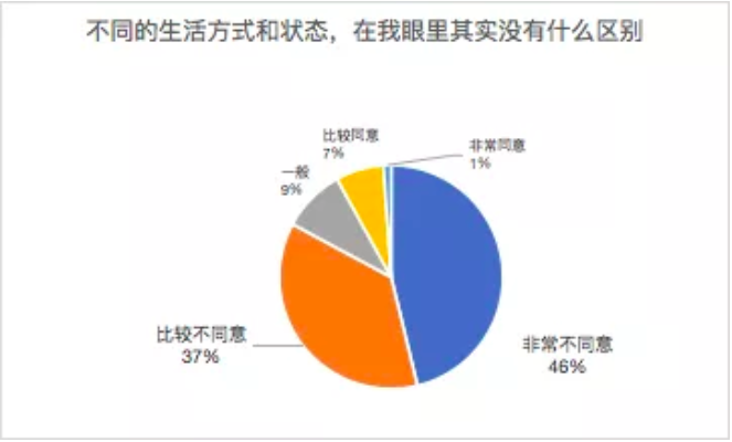人們普遍非常關注不同的生活方式和狀態,超過 83% 的人,不同意「不同的生活方式和狀態間沒有差別」。