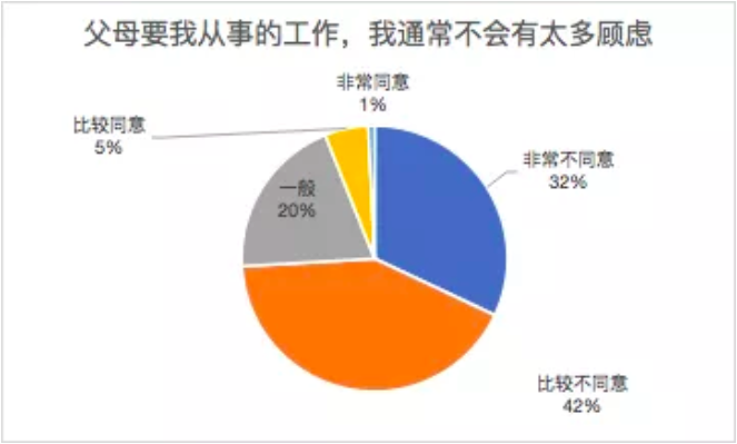 這是一代不會僅僅為了父母就決定自己職業和朋友選擇的人。超過 74% 的人不認同「父母要我從事的工作,我通常不會有太多顧慮」,「超過 68% 的人不認同「父母比我更懂得要交什麼樣的朋友」。