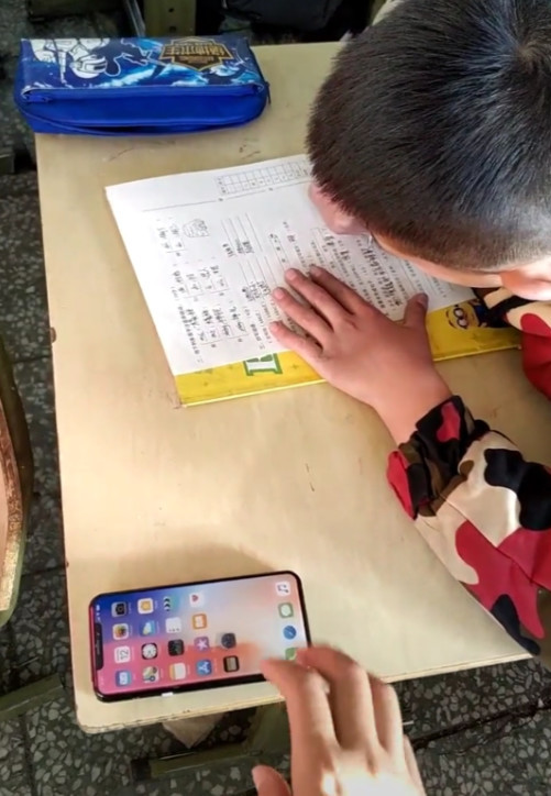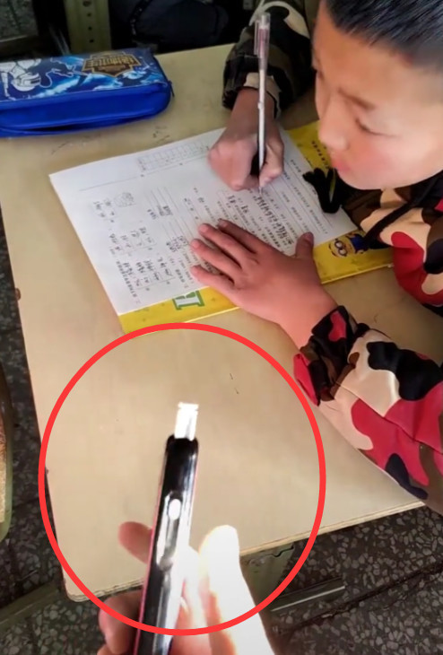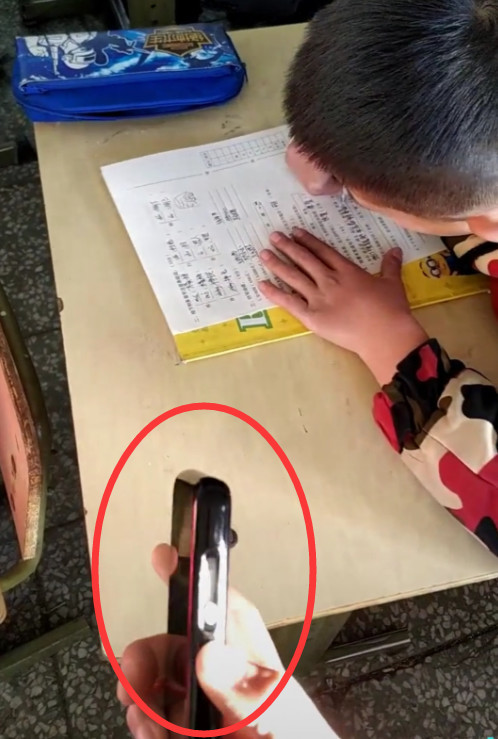 为了监督学生们,同时也是为了打发时间老师就在同学之间走来走去。突然走到后面的时候,竟然看到有一位同学的桌子上放在一个手机,还是放在了最显眼的位置。虽说现在的小学生使用手机,已经是件很正常的事情了,但是这带进考场还放在书桌上就不对了。于是老师上前一看,拿起了学生的手机,这才发现了其中的奥妙,瞬间笑了。