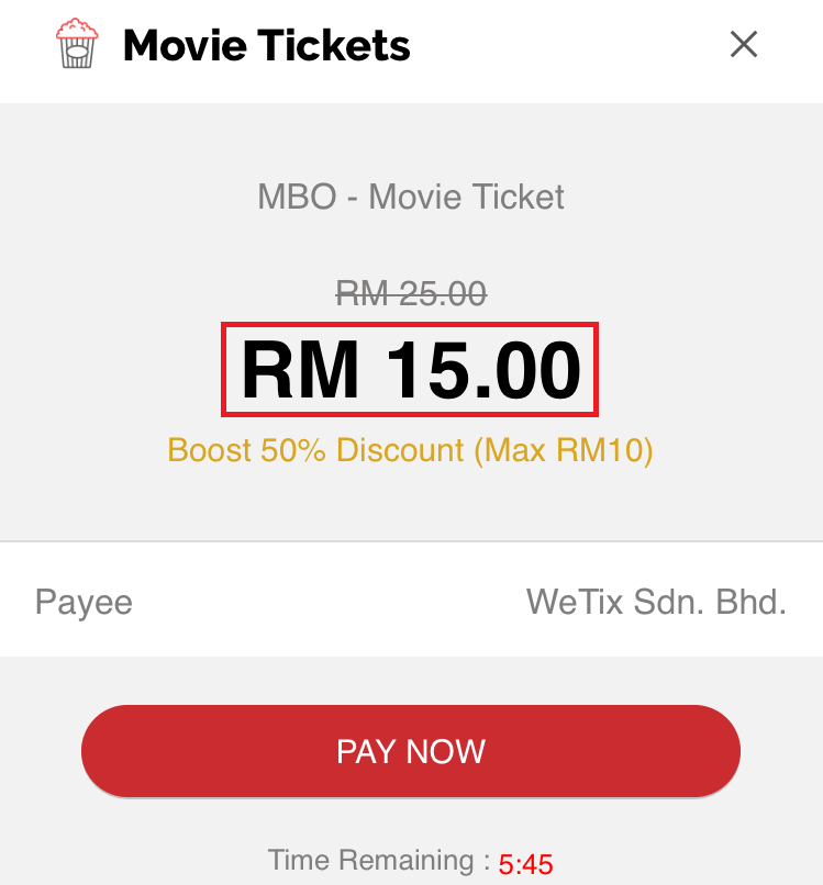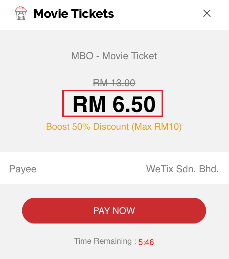 只要你通过Boost 电子钱包购买MBO 及MMcineplexes电影院的戏票,即可获得50%的回扣!