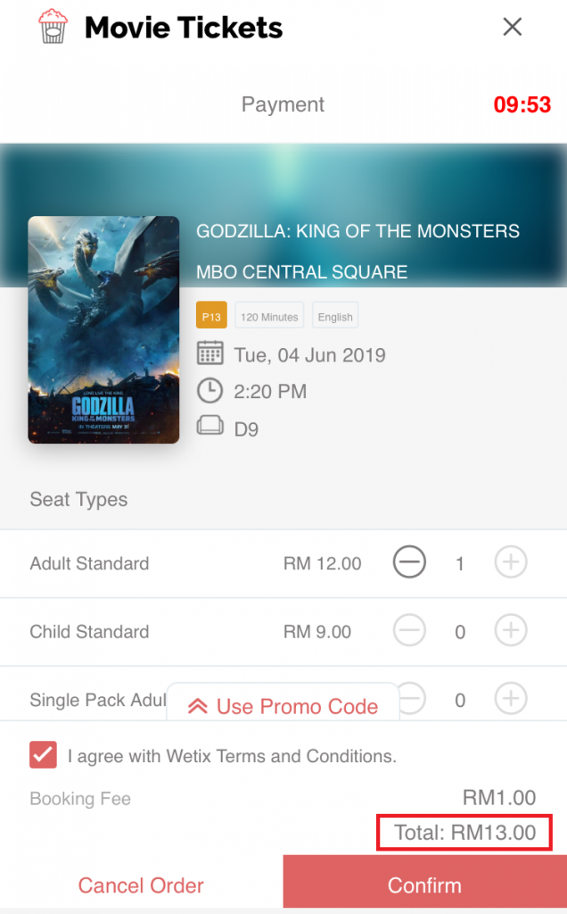 这样购买的话,1张戏票RM6.50,2张戏票只需RM13.00!