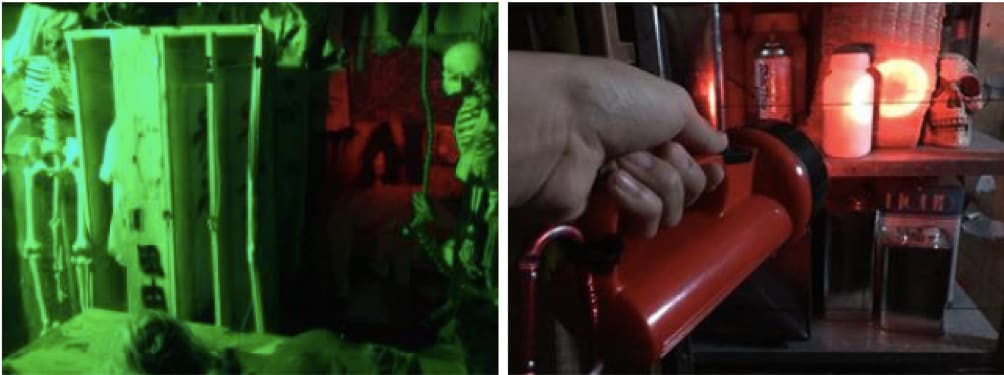 而在處處充滿驚嚇感的鬼屋裡,如果途中出現身體不適或是無法承受精神壓力的人,在鬼屋內都設有逃生出口,可以直接走出去,就會是出口了,千萬不要勉強走完全程喔。