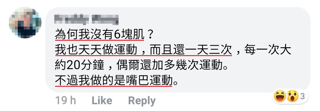 ▼ 网友抱怨:「我也每天做运动啊,为何物就没有6块肌?」