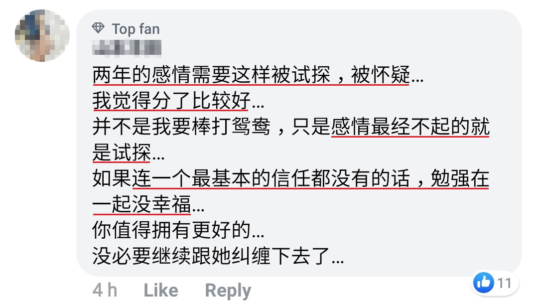 然后回到家后,同样的事情又再发生了,她又再block完全部联系方式,然后剩下fb讲:「现在我不在你旁边,你可以Accept她了啊」,讲我喜欢x玲啦,什么的,最后我抛下一句「我们彼此需要冷静几天」,就被block了…