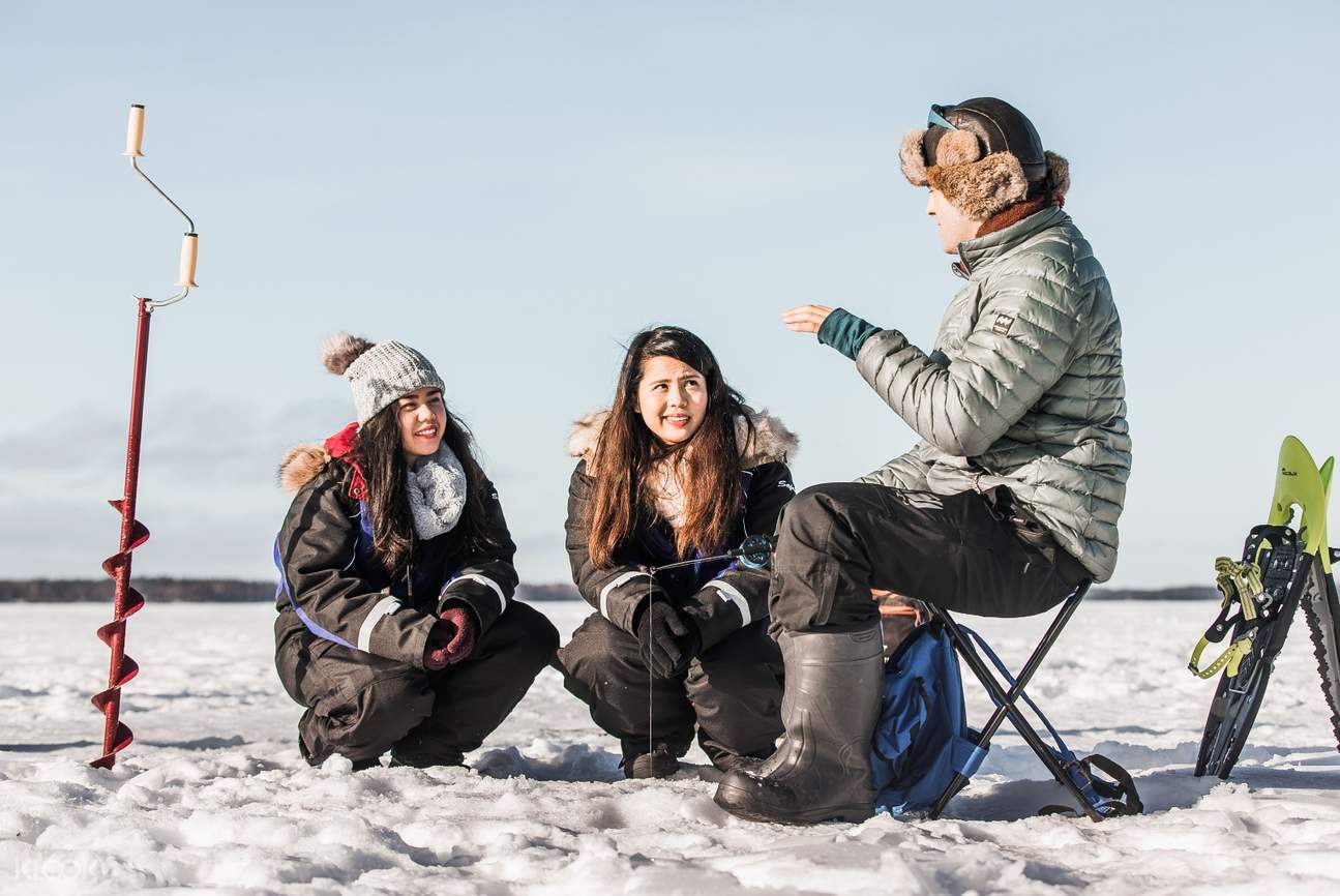 冰釣可以說是芬蘭熱門的休閒活動之一,在結冰的湖面上鑽出一個洞並使用當地原始的釣具釣魚,一邊欣賞冰湖美景與極地風光。
