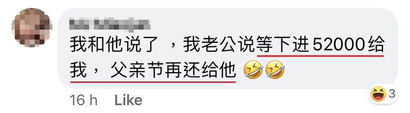 一名大马女子昨天在面子书发文,感谢老公送给她的520礼物!该帖文立刻引起网友们的关注,因为她收到的520礼物不是鲜花,而是RM5,200现金入账!