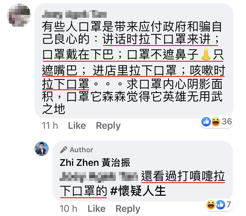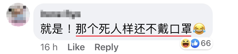 「我讲了醬多废话,你知道要怎样做liao没有?!现在要跟Covid-19打仗,我们要靠自己!要靠你们的死人态度!不要因为Covid-19好像越来越少了,就醬样衰不戴口罩!戴啦!那个死人样还不戴口罩!」