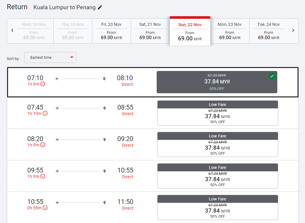 ▼ 折扣50%!回程现在只需 RM37.84!