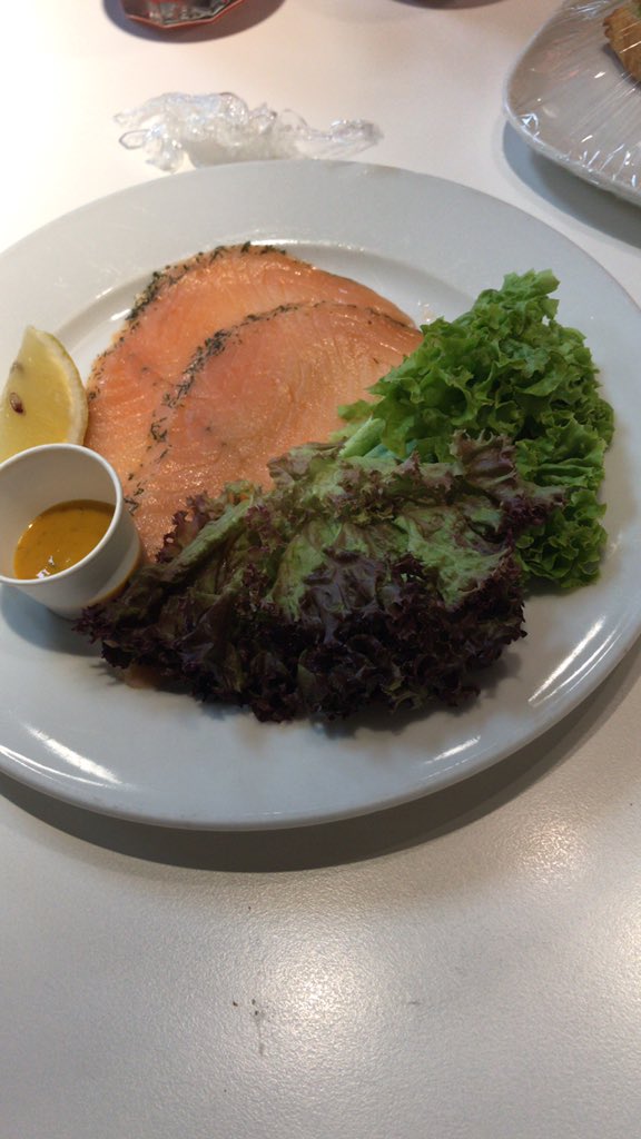 如果想要购买许多种不同的餐点,首先就要像我这样,推一辆小推车去排队。接着就领取杯子和餐盘。有些食物顾客可以自己拿,有些则必须由工作人员服务与提供。