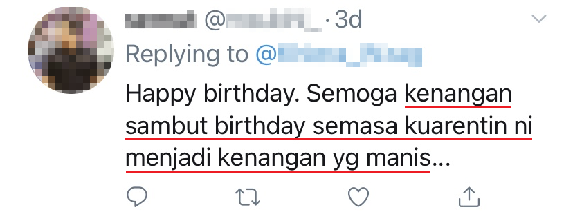 近日一则推特(Twitter)推文在网上流传,一名大马女子在隔离期间过生日,原以为今年的生日只能独自度过,没想到前线人员竟然准备了生日惊喜给她,让她感动落泪!