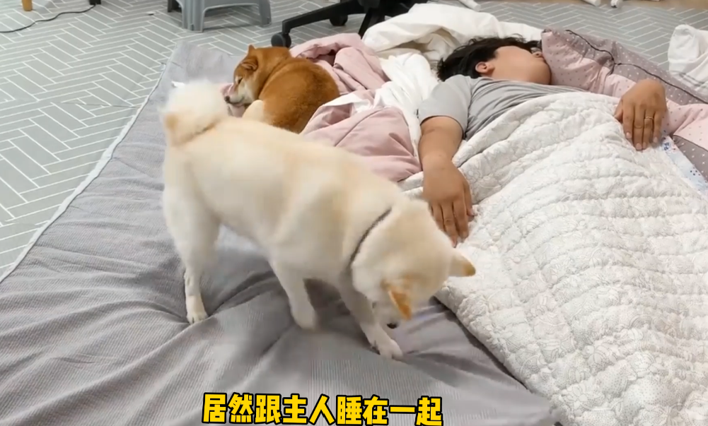 在白柴的努力下,黃柴倒是是被吵醒了,女主人接著說讓男主人醒來,黃柴似乎也聽懂了,但是它太溫柔,雖然也試圖叫男主人起床,但是卻以失敗告終,白柴看到寵主還在睡它就急眼了。