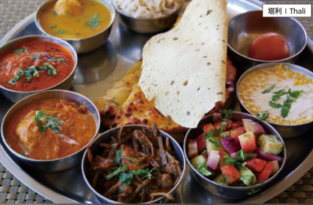 北印度以餅為主食,傳統的Thali會搭配不同的辛香沾料 /英語島編輯室
